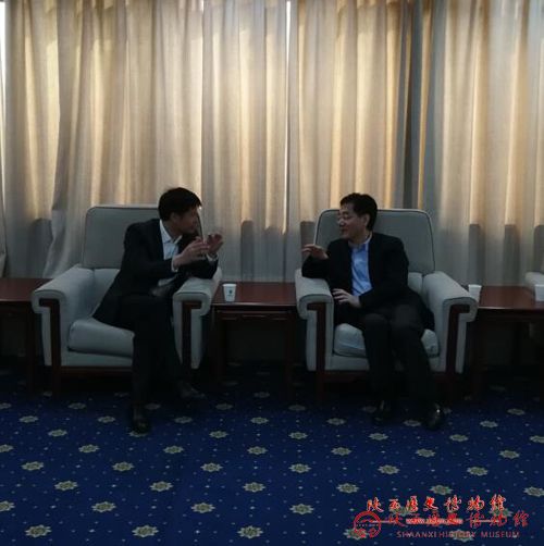2018年4月18日上午,在陕西省壁画保护研究基地常务副主任晏新志、壁画基地办公室主任杨文宗的带领下,壁画基地办及宣教部流动博物馆一行赴西安光学机械精密研究所交流。