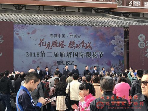 2018年3月23日,我馆文创工作者参加了由中共西安市雁塔区委、雁塔区人民政府、西安市旅游发展委员会、西安市文物局主办,雁塔区委宣传部、区旅游局、区文体局、区经贸局、小寨地区管委会办公室、大雁塔街道办事处、西安市青龙寺遗址保管所于青龙寺遗址景区古原楼广场承办的“花见雁塔·樱动全城”2018第二届雁塔国际樱花节启动仪式。