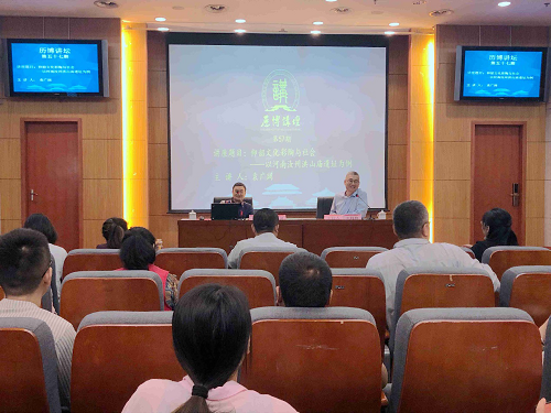 翟战胜主持提问互动环节。袁广阔回答了听众有关汝州洪山庙彩陶纹饰、原始宗教发展、区域文化解读、考古学发展趋势等问题。讲座结束后,袁广阔与现场听众进行了热烈地讨论。