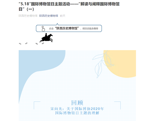 第二阶段为专家声音:“博物馆日主题的回顾与阐释”。从5月14日至5月17日,连续4天围绕主题发布相关专家学者对国际博物馆日主题的释读,除了介绍国际博协发布的2021年国际博物馆日主题阐释以及国家文物局对今年国际博物馆日主题的深入解读,还回顾了专家对过去两年国际博物馆日主题的阐释。
