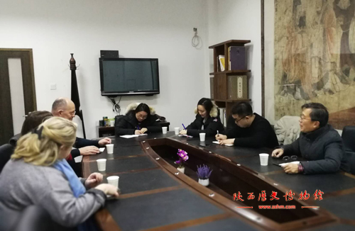 2018年1月6日,利物浦国家博物馆专家Steve Newman一行三人赴陕西历史博物馆进行交流,陕西历史博物馆壁画基地办公室主任杨文宗、副主任王佳及相关业务人与来访专家进行了交流座谈。