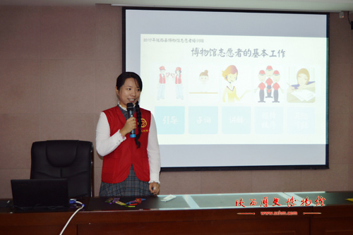 2017年11月25日,我馆委派志愿者王新娜为陇西县博物馆志愿者培训,对陇西县博物馆馆校共建及社会招募的62名志愿者进行了专业培训。