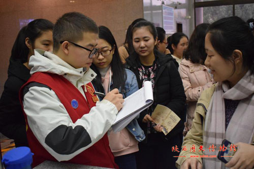 陕历博新一届大学生志愿者招募工作从9月初开始,通过志愿者官微、官博及各高校官方网站等公众平台发布招募消息,优秀志愿者走进高校宣传、宣讲,共吸引了1800名大学生参加面试,通过面试参加培训者共1500名。本着实践、创新、发展的理念,本年度志愿者培训工作分为3个部分,第一部分是展厅讲解培训,第二部分是咨询服务培训,第三部分是服务实践培训。志愿者考核工作在往年展厅考核的基础上进行细化分类,坚持实践中出真知,理论知识与现场实践相结合,分为展厅讲解、服务点实际操作、突发问题现场应对、基本问题现场笔试四个环节,做到了“广招募、详培训、严考核”。通过考核,最终有893名优秀大学生正式加入陕历博志愿者团队。