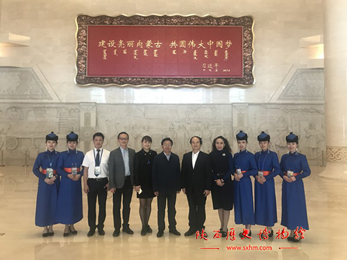 9月26日,第二届中国——蒙古国博览会在内蒙古自治区首府呼和浩特举办,我馆党委书记、馆长强跃率党政办公室主任程俊、宣传教育部部长歩雁等赴呼市参加有关活动,并于博览会期间与内蒙古博物院副院长于宝东签署了战略合作协议。同期在呼市出席博览会重要活动的陕西省副省长魏增军、陕西省文物局局长赵荣等领导莅临仪式现场共同见证了协议的签署。