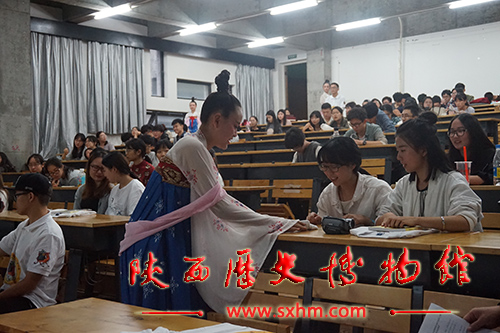 活动开始后,“流动博物馆”的讲解员们依托多媒体演示和复仿制文物,以历史文化文物为主线,为大家带来了三彩骆驼载乐俑、彩绘雁鱼铜灯、鎏金舞马衔杯纹银壶三件珍贵文物详实而生动的现场讲解,中间穿插的我馆志愿者带来的精彩的唐代舞蹈,将活动气氛推向了高潮。活动过程中的有奖知识问答环节,同学们踊跃参与,还不时提出自己的见解,在轻松自然的交流氛围中学习到不少历史文物知识。本次活动在热烈活泼的气氛中落下了帷幕,同学们无不被中国辉煌的历史文化所震撼,为中国几千年年的文明感到骄傲与自豪。