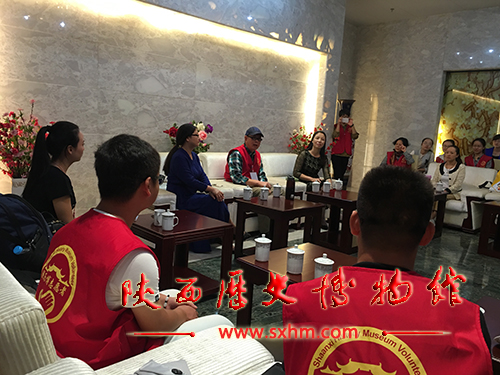 接下来,我馆志愿者与宁夏博物馆志愿者进行了友好深入的座谈,双方就各自博物馆志愿者的具体情况进行了简要的交流。座谈会上志愿者代表的发言感情真挚而强烈,不仅体现了个人情感,也道出了每个志愿者的心声及志愿者工作的真谛所在!我馆志愿者吴光辉同学在发言中讲述了他在博物馆志愿服务的心得体会,不仅认识了来自全国各地的游客,还结识了很多志愿者老师和同学。他讲到:“用欢喜的心做喜欢的事,在陕历博做志愿者是我大学期间最有意义的一件事。”他的讲述引起了在座志愿者共鸣,赢得经久不息的掌声。