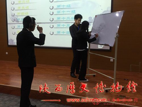 本次大赛吸引了省内各高校的广泛关注和积极参与,共有陕西师范大学、西安外国语大学、西北工业大学等13所高校42名选手参赛。比赛共分“叙三秦故事”“ 煅讲解风范” “增团队文识”三个环节,第一环节中,各代表队以演讲、诗歌朗诵、情景剧、相声、讲故事、舞蹈等形式精彩地展现了志愿者的志愿故事以及志愿团队的发展历程,生动丰富的展示也让我们充分地体会到了陕西各大高校志愿者对志愿服务的热爱以及无私奉献的精神。在第二环节中,各位志愿者充分展现了自己娴熟的讲解技巧,丰富的知识内涵,评委老师的提问及点评亦使各位选手及在场观众收获颇多。第三环节“增团队闻识”以团体竞猜的形式进行,参赛者们热情高涨、跃跃欲试,寥寥几笔就勾画出文物轮廓,赢得了评委及观众的阵阵掌声。各大高校的代表队表现都极为出色,紧张激烈的比赛显示出高校志愿者们的靓丽风采。