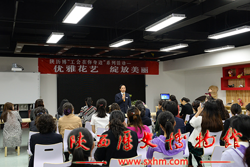 4月18日,我馆工会为了丰富职工生活,增加团队凝聚力,特邀请省文物局、直属系统女工委的领导和我馆女职工一到,在西地下综合服务区举办了陕历博“工会在你身边”——优雅花艺、绽放美丽主题活动。
