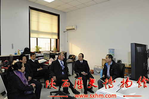 2015年12月31日,省文物局局长赵荣到陕西文物数据中心就该中心2015年的工作情况做专题调研。在调研后,到尚未向公众开放的陕西数字博物馆实体体验馆进行参观指导。