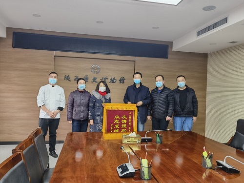 1月29日,西安市小寨路街道办育华社区主任鲁军侠一行,向陕西历史博物馆送来一面写有“众志成城抗疫情,友情援助献爱心”的锦旗,感谢陕西历史博物馆在前期辖区封控期间给予社区疫情防控工作的支持和帮助。