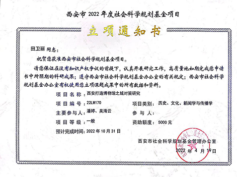 陕历博课题获批2022年度西安市社科规划基金项目
