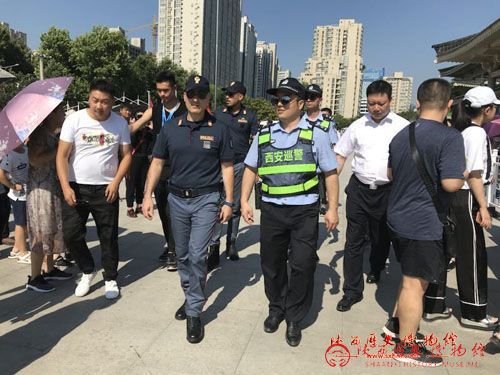 7月20日早9时许,室外热浪滚滚,陕西历史博物馆门口等待参观的游客已排成长队。当中意警察巡逻队经过时,游客们感到非常惊喜,纷纷拿出手机拍照,有人赞叹“在西安旅游...